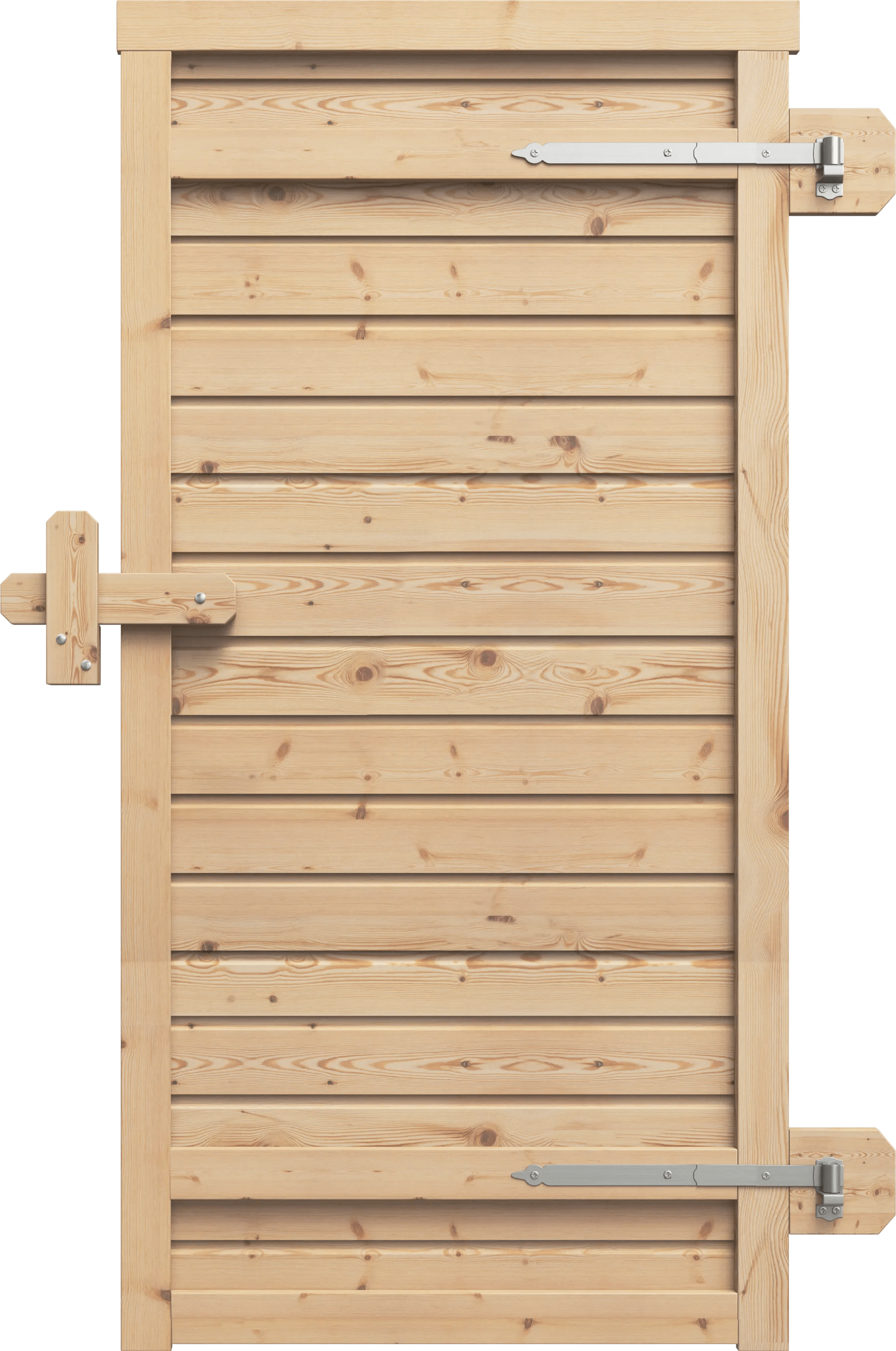 Dörr oisolerade 8×18,5 dm med liggande panel anpassad Trähusets stugsortiment. Hakgångjärn 400 mm, skruv, gångjärnsklossar låsbom och låsklyka. Hängning valbar.