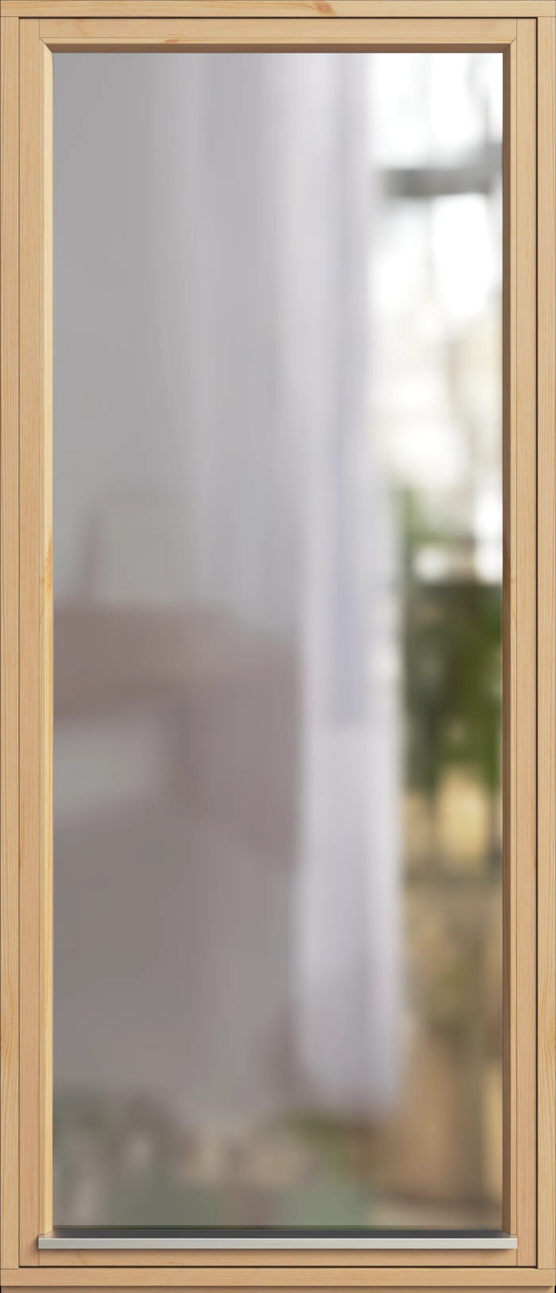 8×18,5 dm allmogefönster med 2-glas isolerglas. Fönstret är fast. Karm 45×103 mm med förborrade 14 mm hål. U-värde: 1,3 W/m²K. Fönster obehandlat med anodiserat droppbleck.