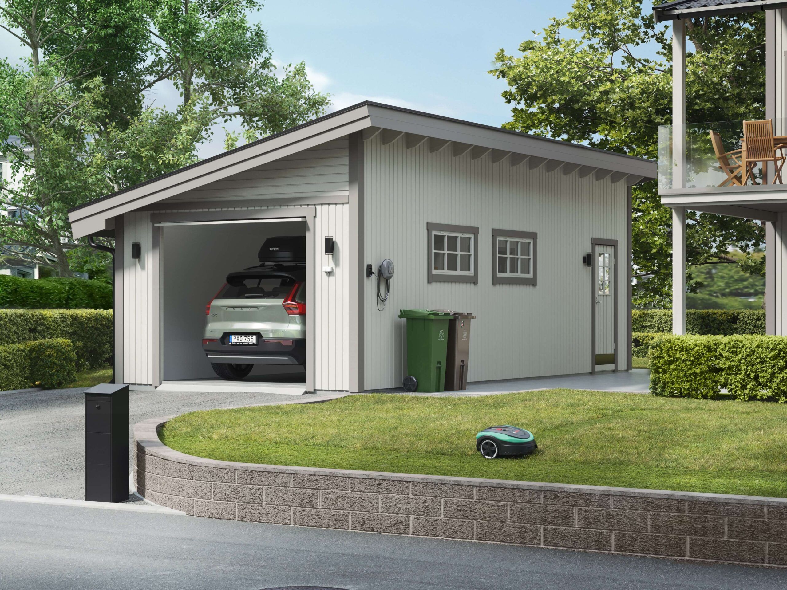Garage 35-Pulpet är ett robust mellanstort garage på 34,9 m² med stående och delvis liggande panel samt pulpettak. Garage 35-Pulpet är lämplig som garage för lite större fordon och förvaring av verktyg, cyklar och barnvagnar. Passar väl in i miljöer med befintliga pulpettak. Garaget levereras som en monteringsfärdig byggsats där stommen kommer i färdiga block med självbärande takbjälkar. Panelen levereras lös i färdiga längder för montage med vindskydd och spikläkt på stommen. Garageport finns som tillval.