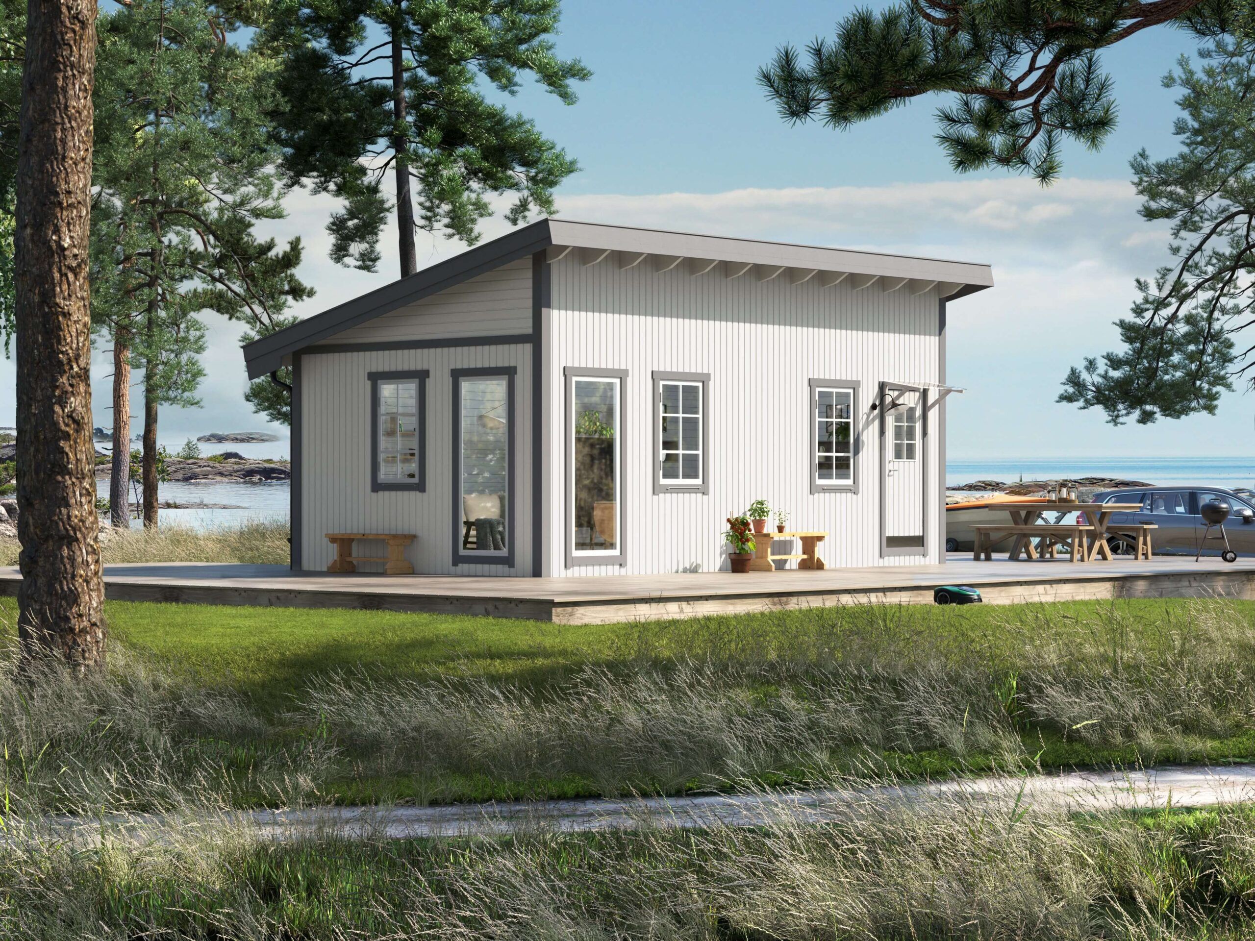 Pailin 30 är ett robust stort Attefallshus på 29,9 m² med stående och delvis liggande panel samt pulpettak. Pailin 30 är lämplig som gäststuga till sommarstugan eller som komplement till befintligt bostadshus. Pailin 30 är ett bra val där stort gaveldjup önskas. Pailin 30 kan med fördel inredas till boende för tonårsbarnen eller som uthyrningsbostad. Passar väl in i miljöer med befintliga pulpettak. Attefallshuset levereras som en monteringsfärdig byggsats där stommen kommer i färdiga block med självbärande takbjälkar. Panelen levereras lös i färdiga längder för montage med vindskydd och spikläkt på stommen.