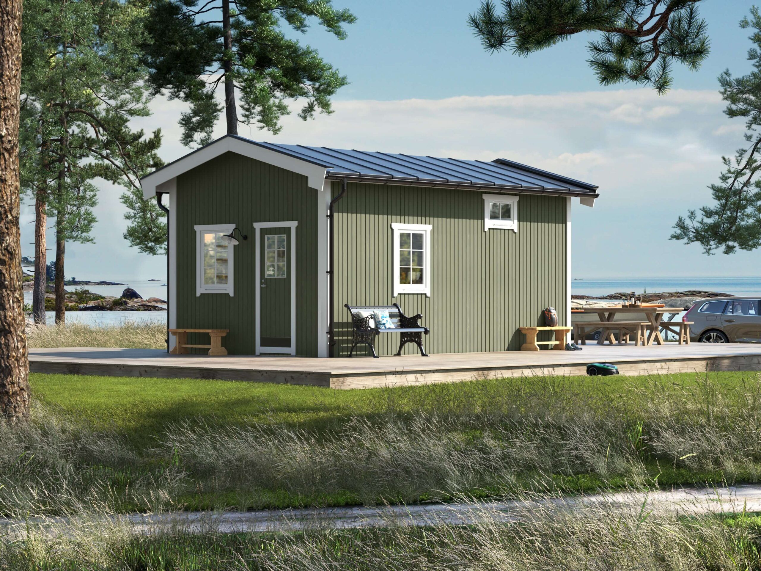 Paulina 25 Loft är ett robust mellanstort Attefallshus på 25,0 m² med stående panel, sadeltak och loft. Paulina 25 Loft är lämplig som gäststuga till sommarstugan eller som komplement till befintligt bostadshus. Paulina 25 Loft är ett bra val där loft önskas för att frigöra utrymme. Paulina 25 Loft kan med fördel inredas till boende för tonårsbarnen eller som uthyrningsbostad. Passar väl in i miljöer med befintliga sadeltak. Attefallshuset levereras som en monteringsfärdig byggsats där stommen kommer i färdiga block med självbärande takstolar. Panelen levereras lös i färdiga längder för montage med vindskydd och spikläkt på stommen.