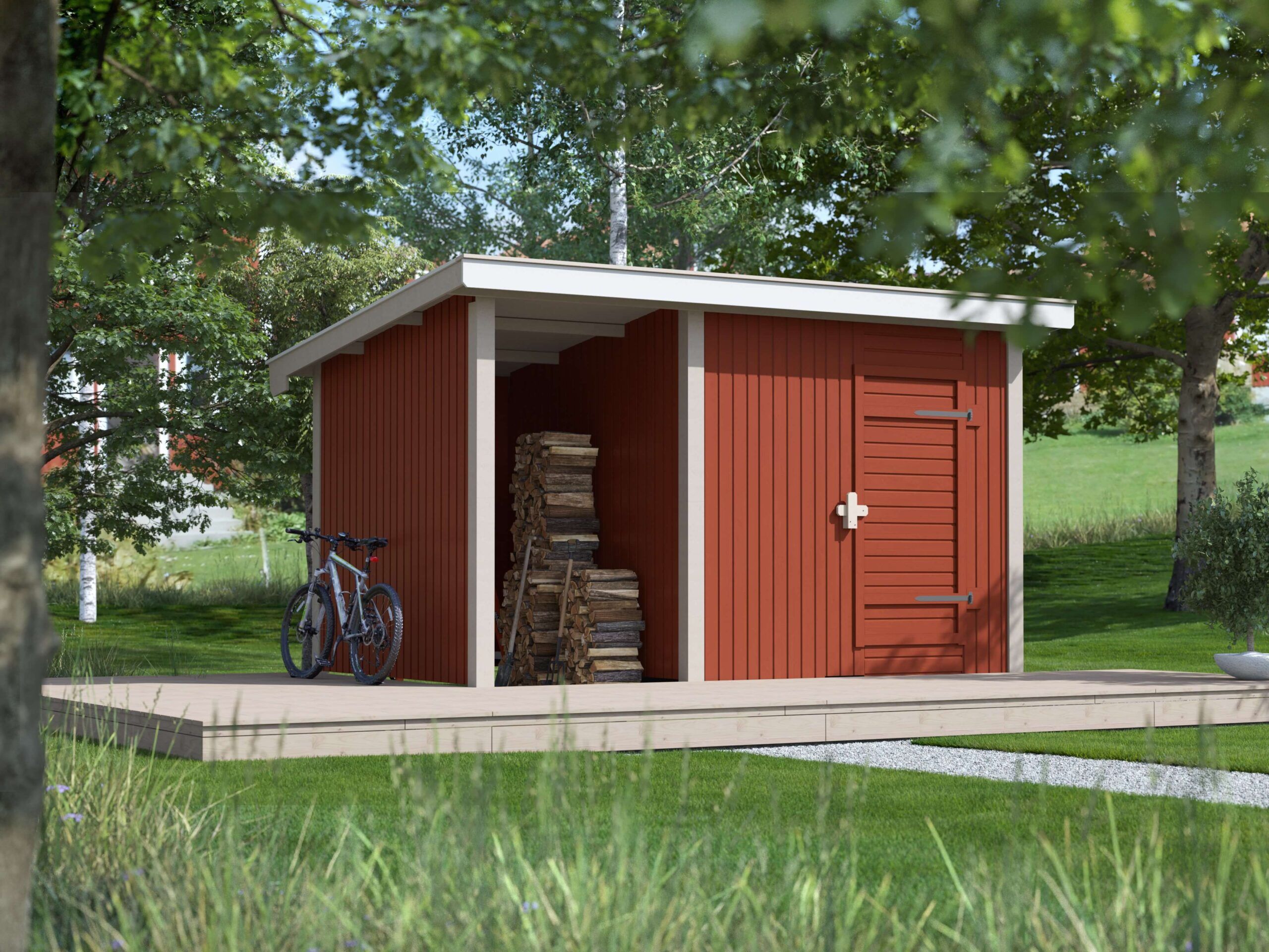Pelle-ved 6 är en mindre redskapsbod med vedförråd på 6,5 m² med stående panel och pulpettak. Pelle-ved 6 är en Lasse 4 med vedförråd på vänster sida. Pelle-ved 6 kan användas till förvaring av mindre trädgårdsmöbler, trädgårdsredskap och ved. Förrådsdelen till Pelle-ved 6 fungerar även utmärkt att inreda som pumphus eller snickarbod. Utmärkt som vedförvaring till sommarstugan. Boden levereras som en monteringsfärdig byggsats i färdiga block med panelen monterad direkt på stommen.