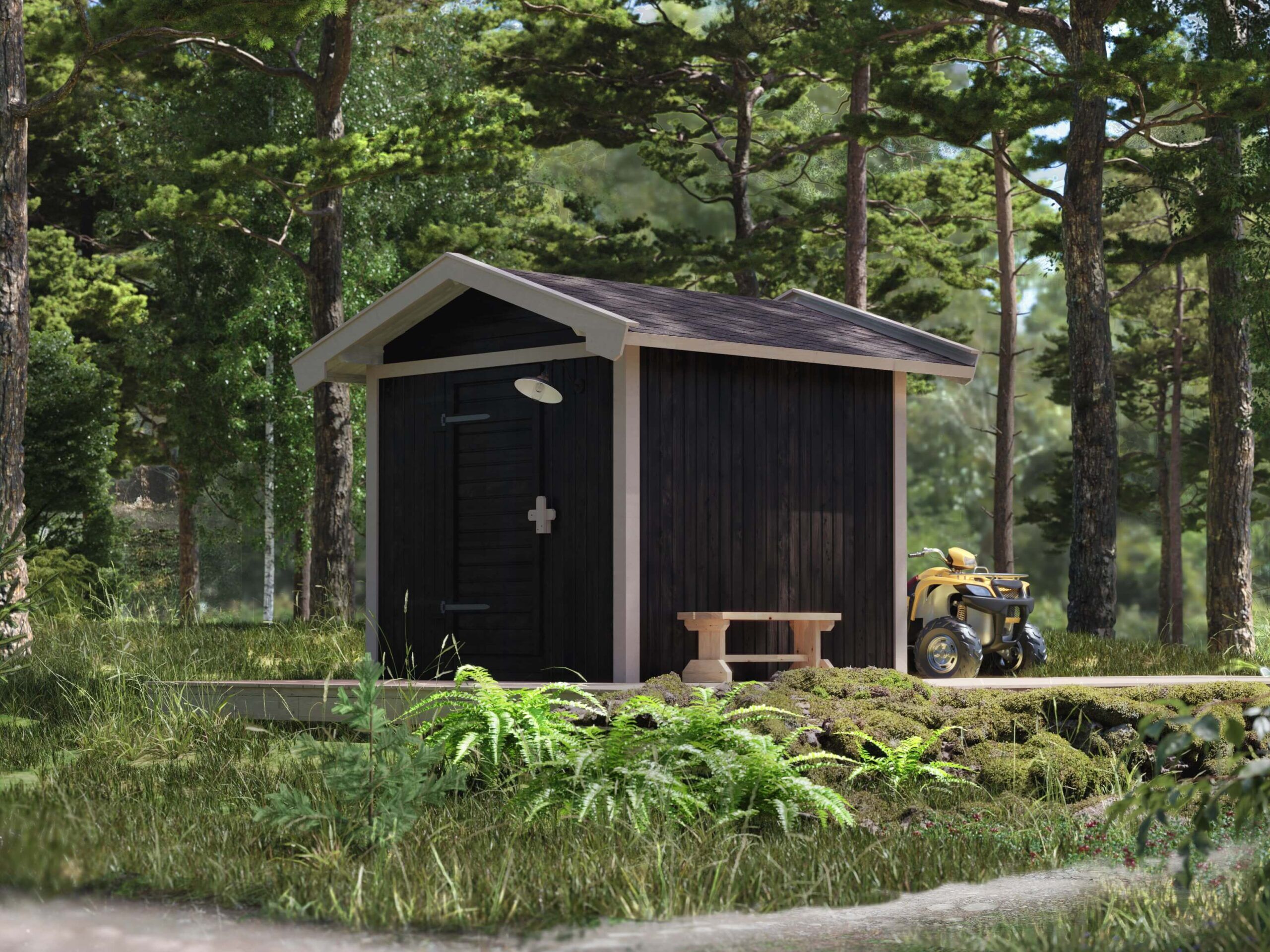 Peter 6 är ett stabilt förråd på 6,5 m² med stående och delvis liggande panel samt sadeltak som passar den lilla trädgården. Peter 6 kan användas till förvaring av däck, gräsklippare, cyklar, trädgårdsmöbler och trädgårdsredskap. Peter 6 fungerar även utmärkt att inreda som pumphus, bastu, snickarbod eller hobbyrum. Passar väl in i miljöer med befintliga sadeltak. Förrådet levereras som en monteringsfärdig byggsats i färdiga block med panelen monterad direkt på stommen. Panel till gavelspetsarna levereras lös.