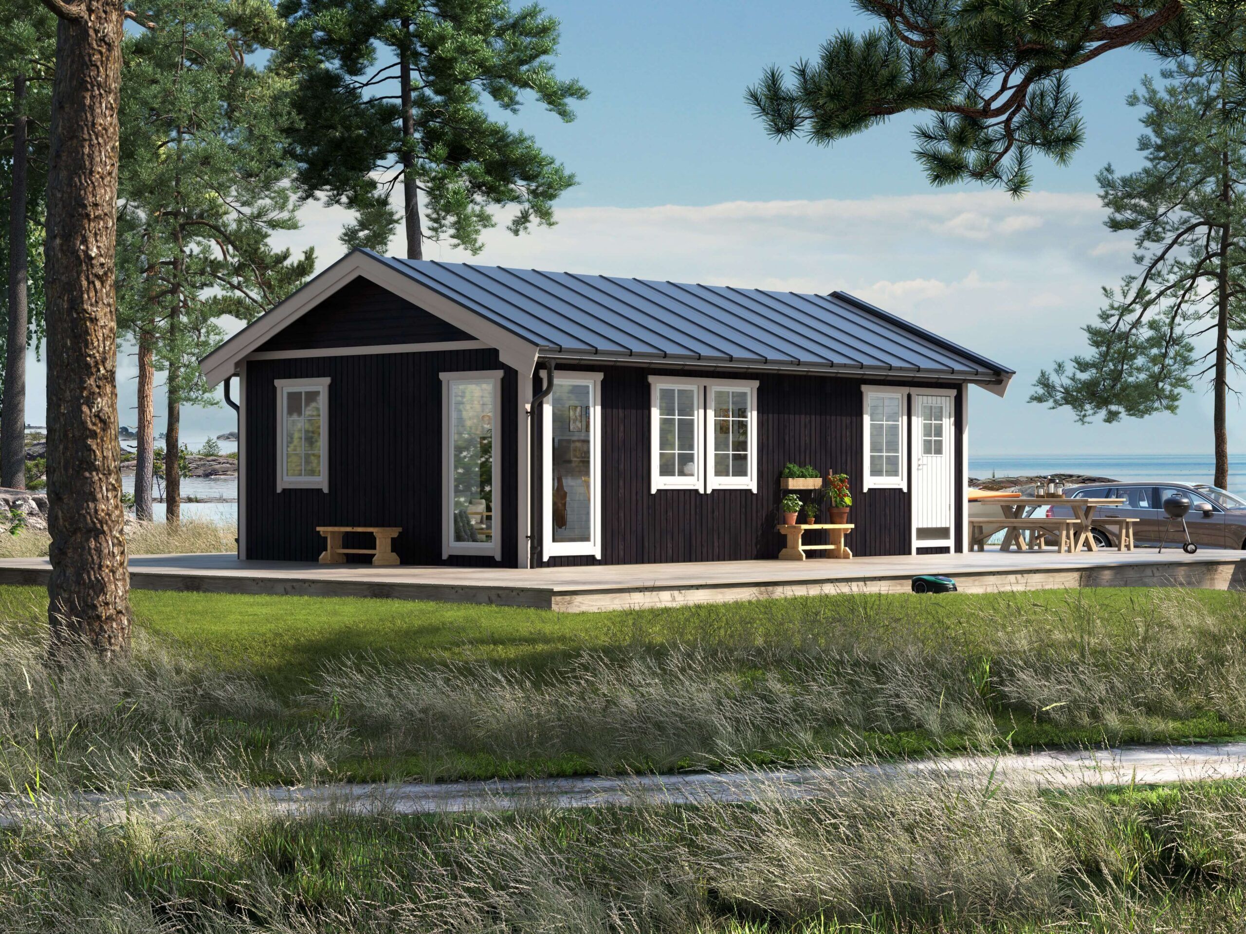 Sorunda 45 är ett robust mindre fritidshus på 44,9 m² med stående och delvis liggande panel samt sadeltak. Sorunda 45 är lämplig som gäststuga eller som en mindre sommarstuga. Sorunda 45 är ett bra val där stort gaveldjup önskas. Passar väl in i miljöer med befintliga sadeltak. Fritidshuset levereras som en monteringsfärdig byggsats där stommen kommer i färdiga block med självbärande takstolar. Panelen levereras lös i färdiga längder för montage med vindskydd och spikläkt på stommen.