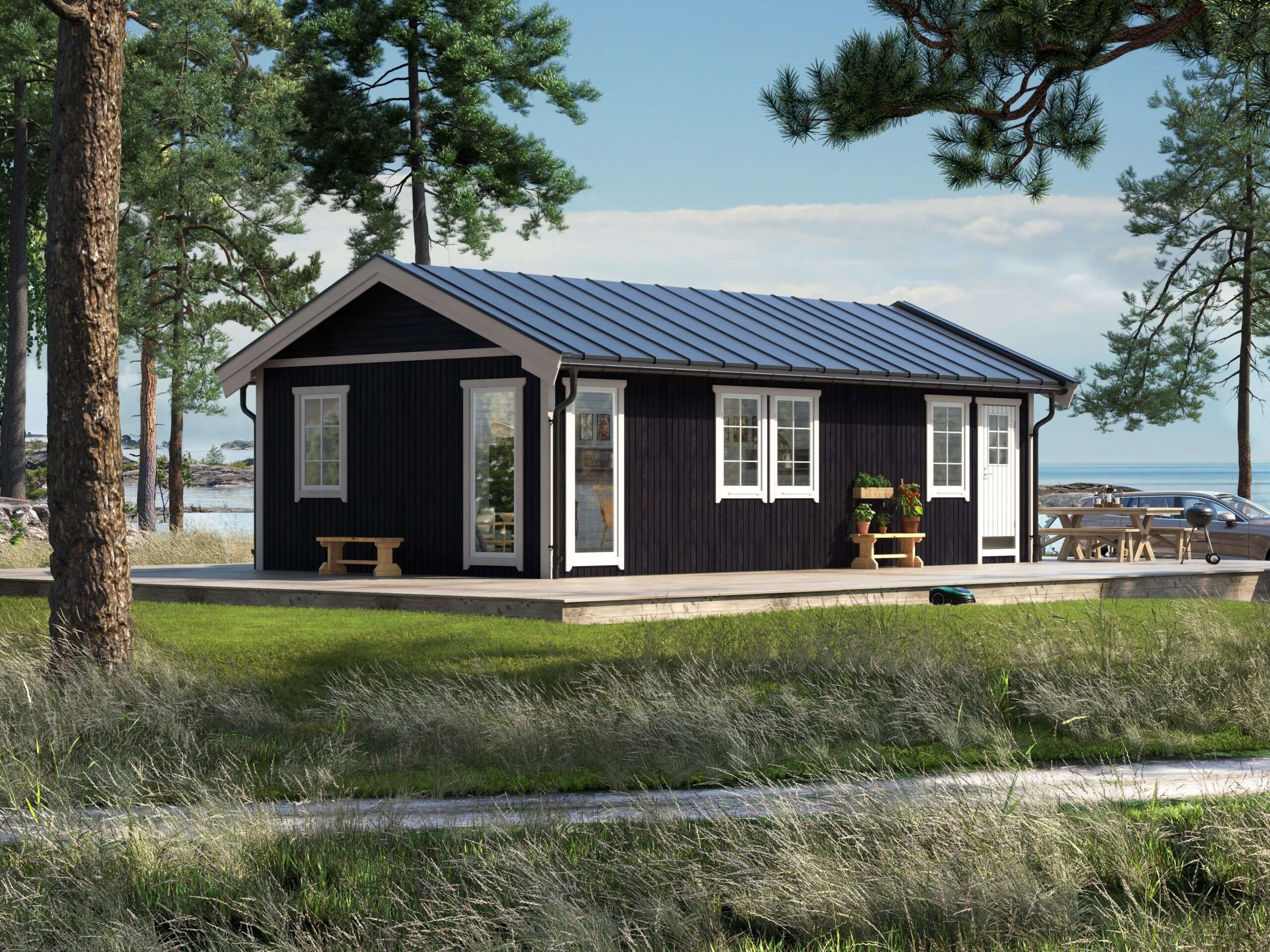 Sorunda 50 är ett robust mindre fritidshus på 49,8 m² med stående och delvis liggande panel samt sadeltak. Sorunda 50 är lämplig som gäststuga eller som en mindre sommarstuga. Sorunda 50 är ett bra val där stort gaveldjup önskas. Passar väl in i miljöer med befintliga sadeltak. Fritidshuset levereras som en monteringsfärdig byggsats där stommen kommer i färdiga block med självbärande takstolar. Panelen levereras lös i färdiga längder för montage med vindskydd och spikläkt på stommen.