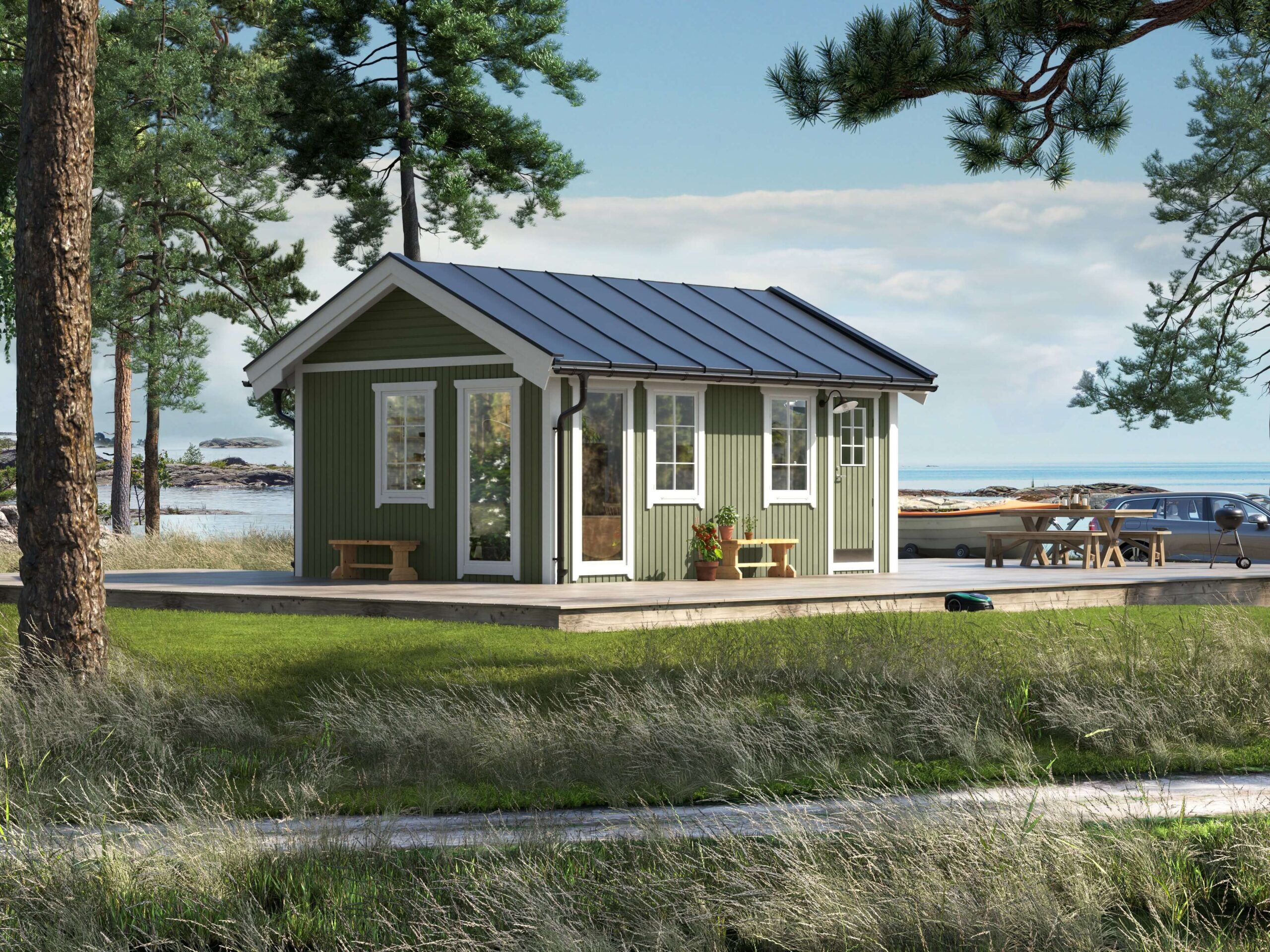 Wilma 25 är ett robust mellanstort Attefallshus på 24,9 m² med stående och delvis liggande panel samt sadeltak. Wilma 25 är lämplig som gäststuga till sommarstugan eller som komplement till befintligt bostadshus. Wilma 25 är ett bra val där stort gaveldjup önskas. Wilma 25 kan med fördel inredas till boende för tonårsbarnen eller som uthyrningsbostad. Passar väl in i miljöer med befintliga sadeltak. Attefallshuset levereras som en monteringsfärdig byggsats där stommen kommer i färdiga block med självbärande takstolar. Panelen levereras lös i färdiga längder för montage med vindskydd och spikläkt på stommen.