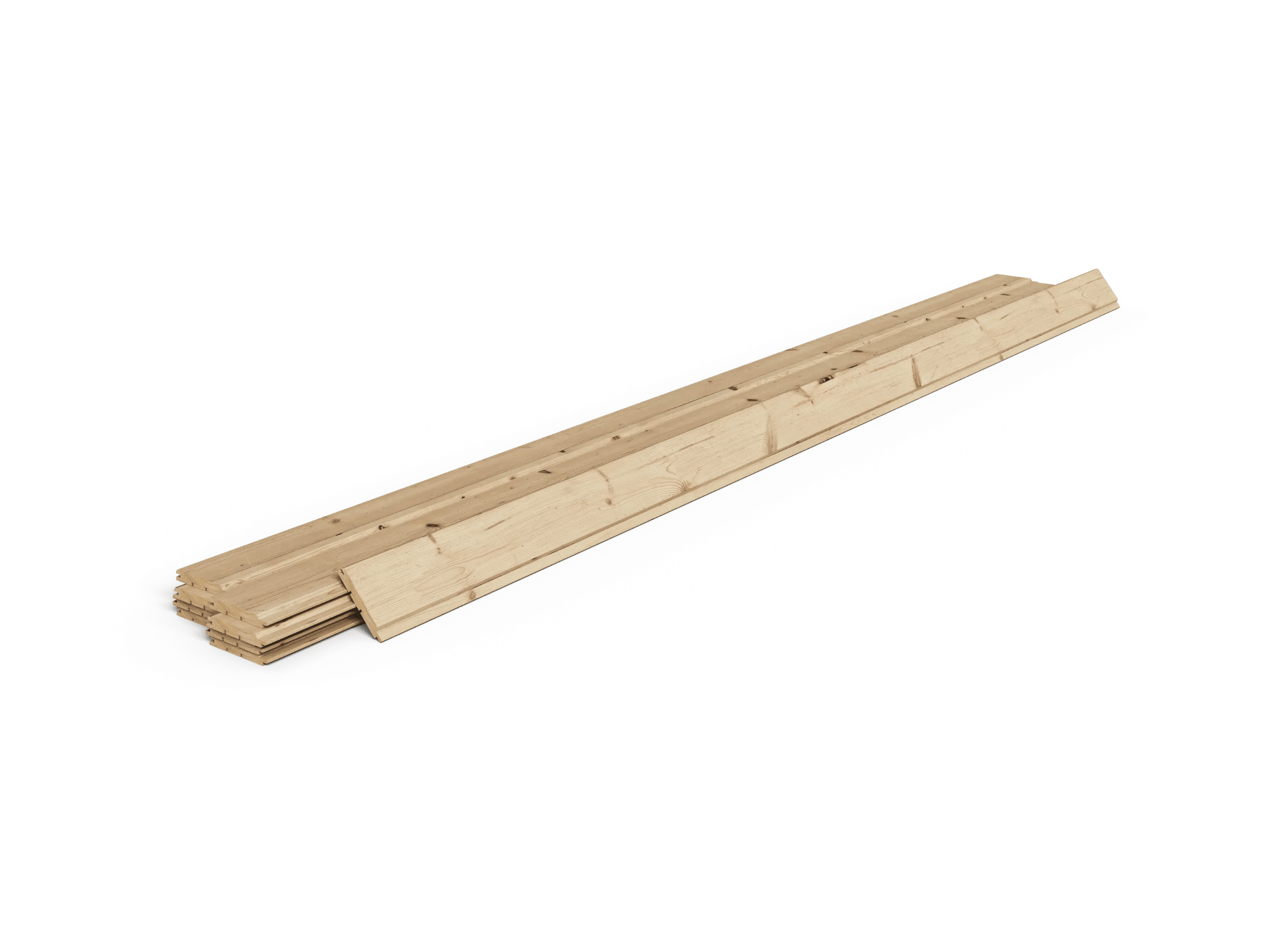 Trähusets egna ytterpanel Tyresö 19×120 mm. Panelen är en spontad spårpanel med fasade kanter.